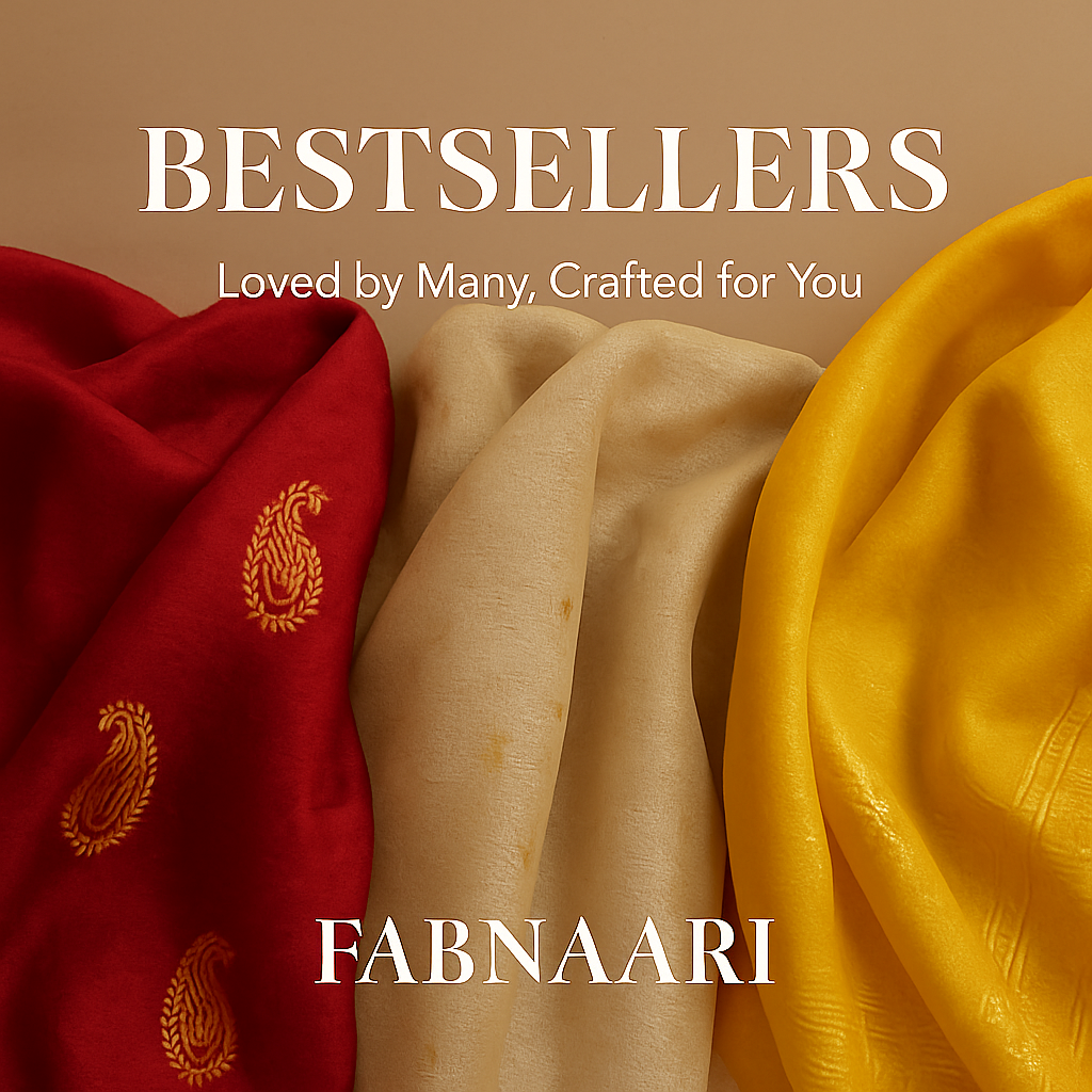 Explore FabNaari’s most loved fabrics that have won hearts time and again. From the effortless grace of Saadgi to the festive glow of Jashn and the regal charm of Shehnai, our bestsellers bring together timeless styles and unmatched quality. These are the fabrics our customers keep coming back for — and they might just become your favorites too.